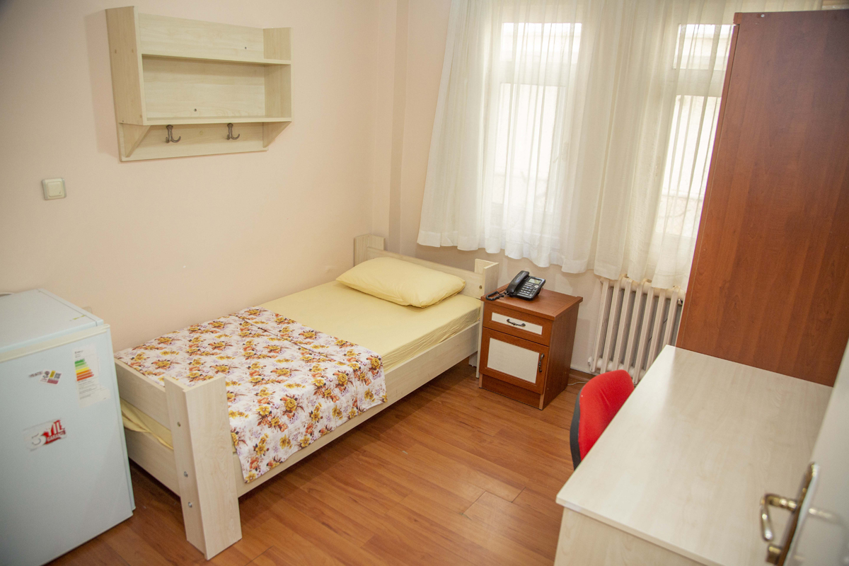 Ekonomik ve suit odalarımız tek kişilik yatak kapasitesiyle oldukça geniş ve ferah bir alana sahip olup bu odalarda bir adet kapalı ve ön bahçemize bakan bir adet açık balkon ile odanın içerisinde yer alan özel banyo vardır.